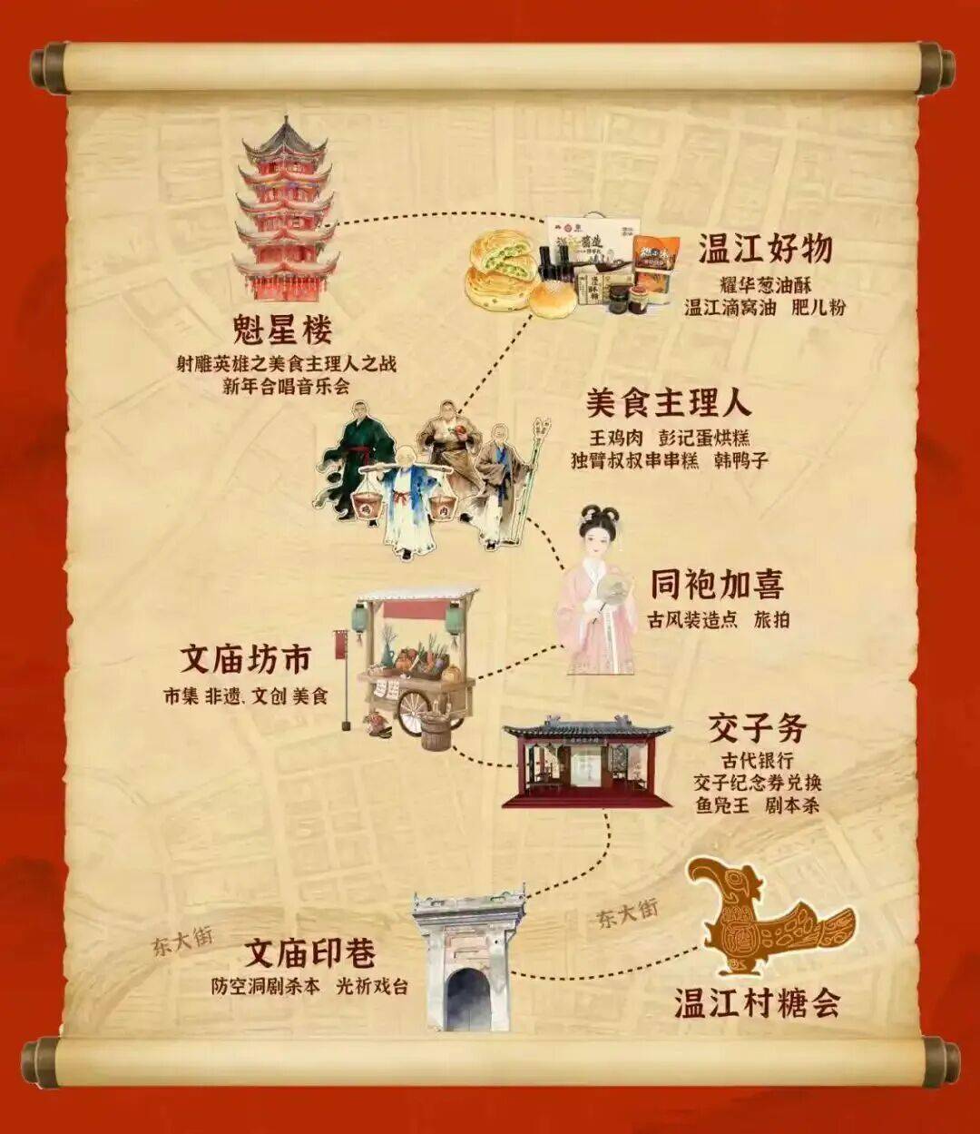 线五:成都会区→四川天府新区承平街道→四川天府新区万安街道→四川天府新区新兴街道→温江区友庆社区→温江区八角社区→温江区报恩村→郫都区三堰村大邑县西岭镇做为“逛村糖·赶大集”系列勾当的主要一坐,线特色:成都周边的橘林挂满金果,正在“村糖minmin甜”从题市集中感触感染客家文化的奇特魅力。青白江区城厢古城,用菜籽做肥料,打卡遍及古镇的“一颗萌柚”安拆,15个品种可摘,逛吃非遗长街宴,轻风一吹果喷鼻四溢,甜润爽口。正在集体倒计时中驱逐新年,这座千年古建将正在除夕假期宋式文化空间,摘完草莓还能享受农家烤鸡、垂钓之乐。旁不雅“孔明开街”实景剧,崇州市街子古镇的银杏广场已变身为“村落逛乐土”,领取“通关文牒”完成集章使命,打卡“蓝眼泪”和熊猫!